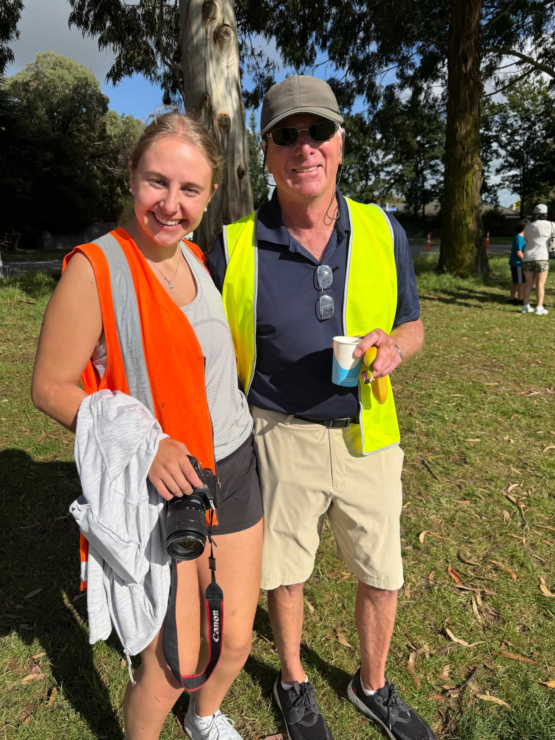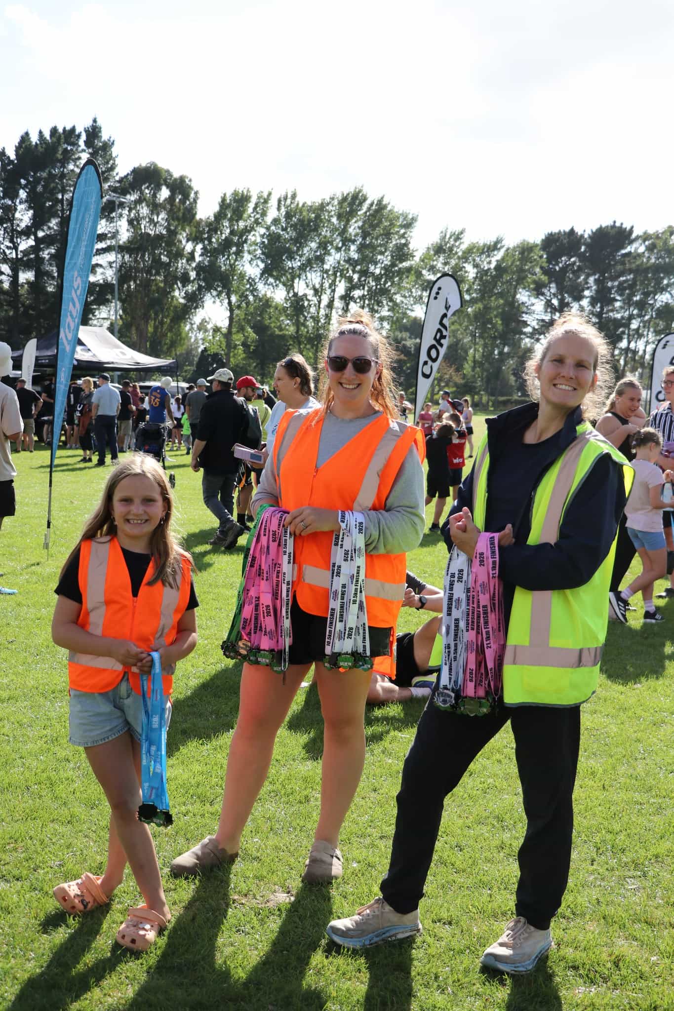 Mitch (alongside Sally) handing out medals at the finishline of the Selwyn Stampede